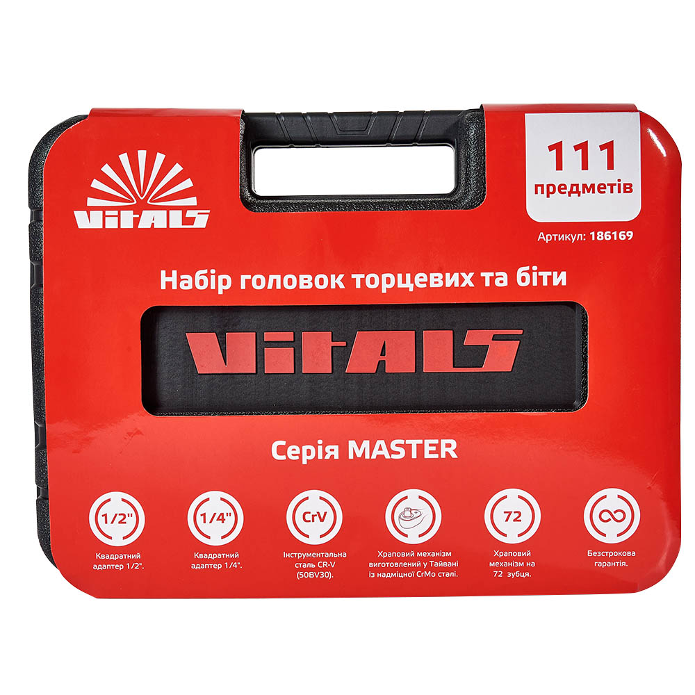 Набір головок торцевих 1/4″ та 1/2″ 111 предметів Vitals Master Impact + Superlock