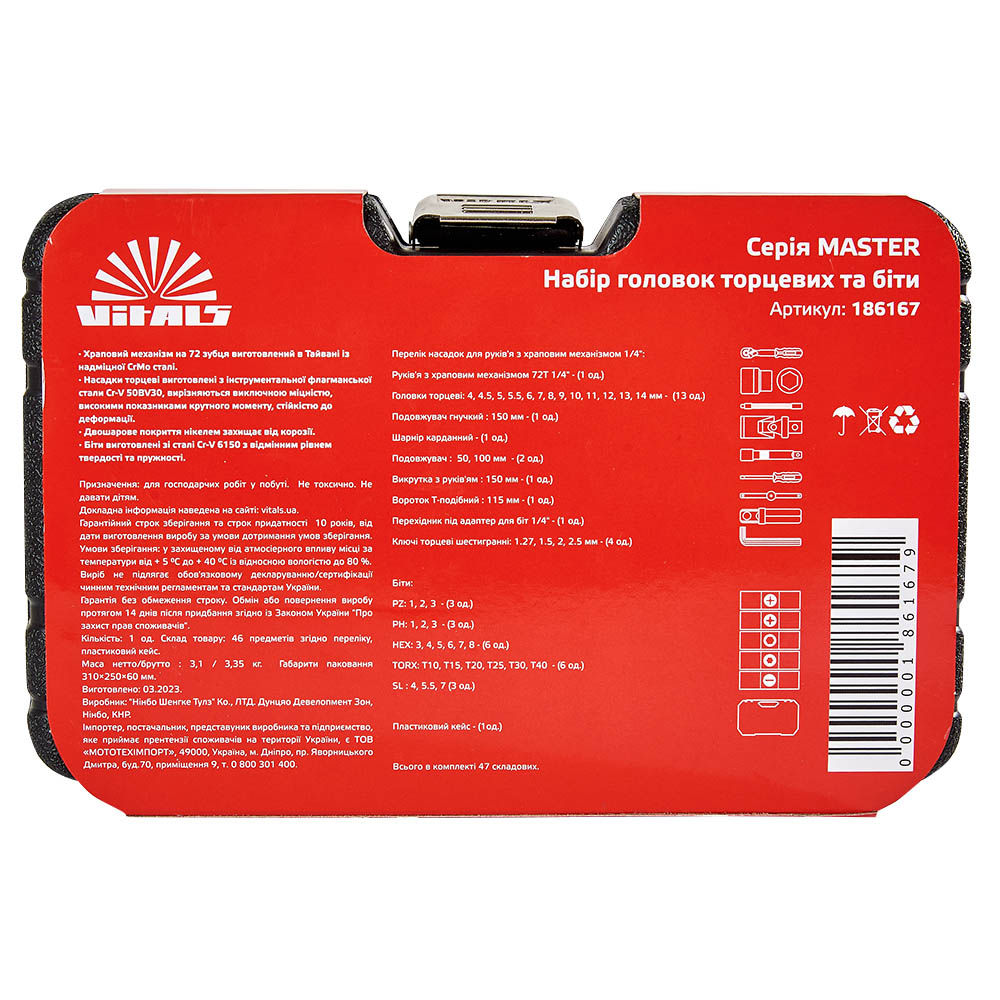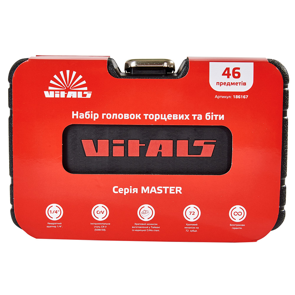 Набір головок торцевих з тріскачкою 1/4″ 46 предметів Vitals Master