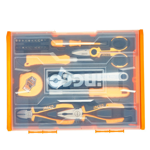 Набір INGCO 29 предметів — це компактний та зручний комплект ручного інструменту, який стане незамінним помічником для домашніх робіт та дрібного ремонту. Усі інструменти виготовлені з високоякісної сталі, що забезпечує міцність та довговічність у роботі.