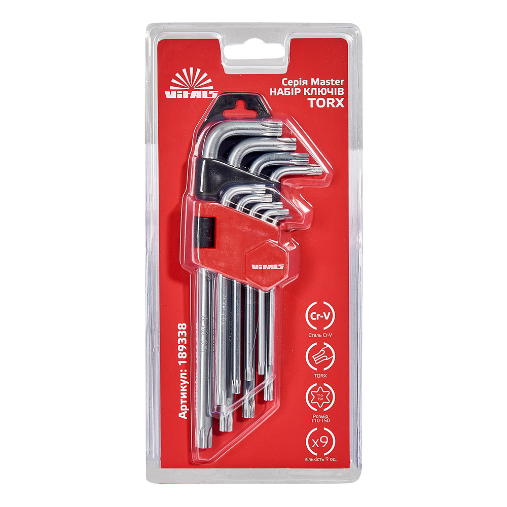 Опис набору ключів шестигранних Torx 9 шт. Т10–Т50 Vitals Master