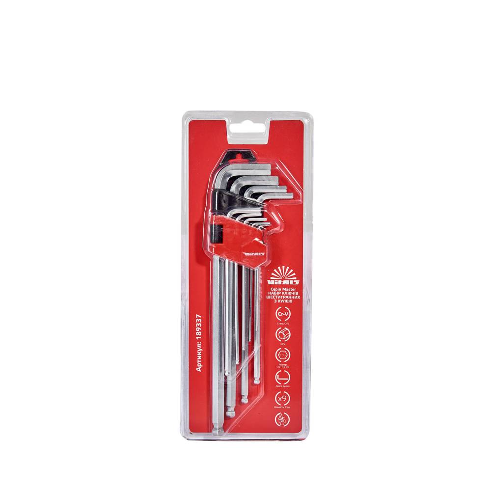 Набір ключів шестигранних з кулею подовжених 9 шт. 1,5–10 мм Vitals Master