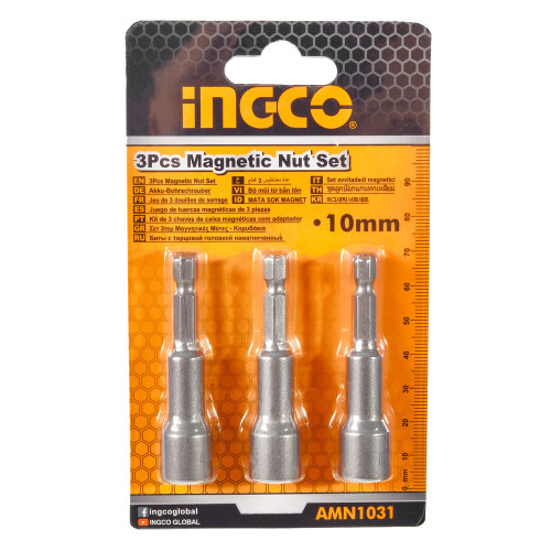 Набір магнітних торцевих головок 10 мм 1/4"×65 мм 3 шт. INGCO