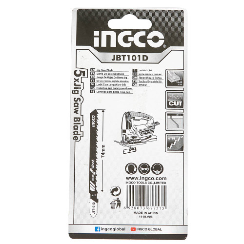 Набір пиляльних полотен по дереву для лобзика INGCO, 5 шт. — це універсальний і надійний комплект, призначений для точного та швидкого розпилювання деревини різної щільності. Полотна виготовлені з високоякісної сталі, що гарантує довговічність, стійкість до зношування та стабільну продуктивність навіть під час інтенсивної експлуатації.