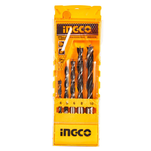 Набір свердел по дереву 5 шт. 4–10 мм, коробка INGCO