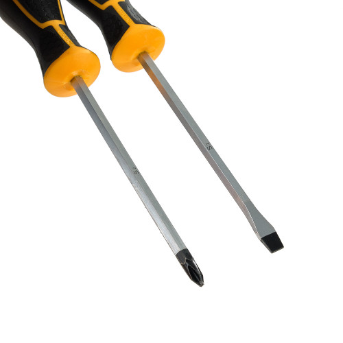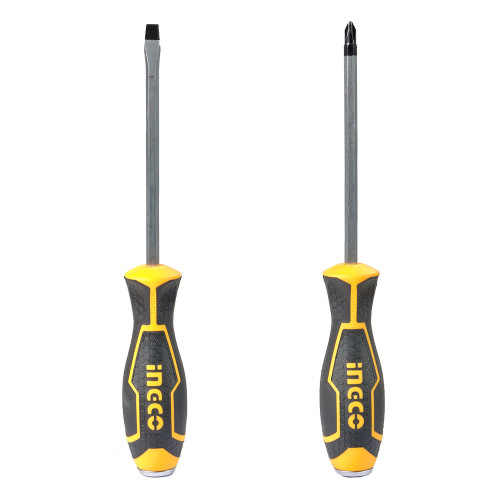 Набір викруток ударних 2 шт INGCO INDUSTRIAL містить в комплекті одну викрутку з прямим шліцом і одну викрутку з хрестовим.