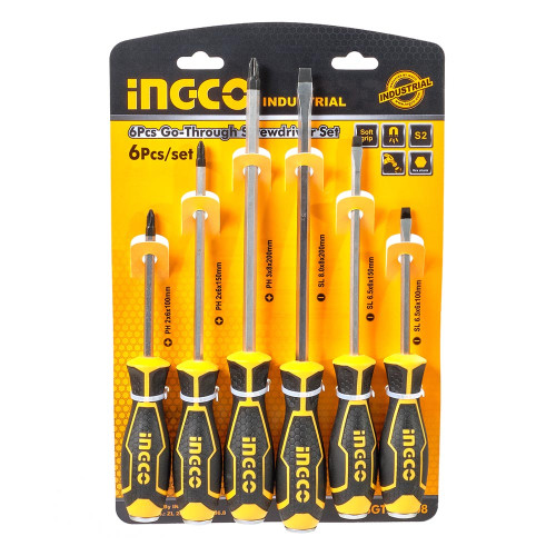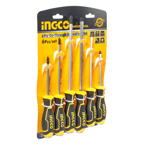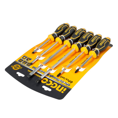 Набір ударних викруток 6 шт INGCO INDUSTRIAL містить в комплекті три викрутки з прямим шліцом і три викрутки з хрестовим.