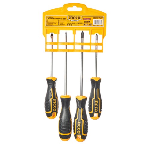 Набір викруток INGCO з 4 предметів призначений для закручування та відкручування різних елементів кріплення. Комплект включає дві викрутки з прямим шліцом і дві хрестові викрутки, що робить його універсальним рішенням для побутових і професійних робіт.