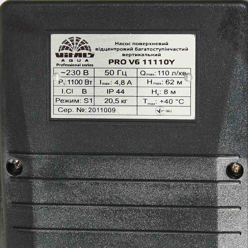 Опис насосу поверхневого відцентрового багатоступінчастого вертикального Vitals aquaPRO V6 11110Y