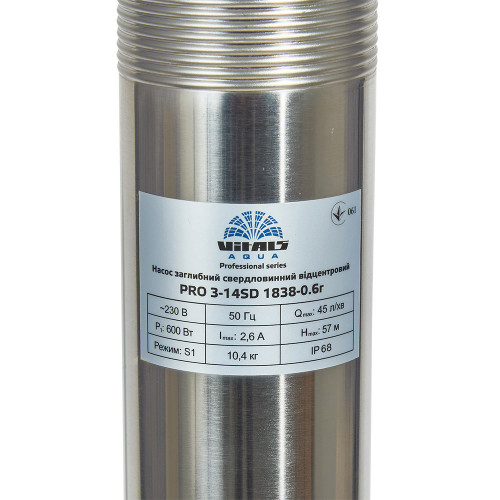 Насос занурювальний свердловинний відцентровий з підвищеною стійкістю до піску, Vitals Aqua PRO 3-14SD 1838-0.6r, призначений для підйому та подачі чистої холодної води з глибоких джерел.