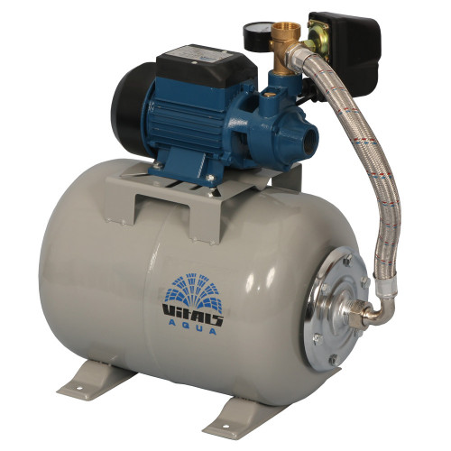 Станція Vitals Aqua APQ 435-24e оснащена консольним роторним вихровим самостійно засмоктувальним насосом серії PQ. Насоси цього типу стабільно працюють у разі наявності у воді великої кількості повітряних бульбашок, найчастіше їх використовують у тих випадках, коли необхідно отримати великий напір води при невеликому об'ємі перекачки. Щоб уникнути частих вмикань і вимикань насоса, а також щоб тиск у системі змінювався не стрибкоподібно, а плавно, в конструкції станції передбачений гідроакумулятор (сталевий розширювальний бак з еластичною мембраною) ємністю 24 літри.