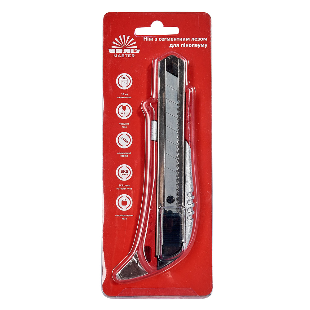 Ніж сегментний для лінолеума 18 мм металевий Vitals Master
