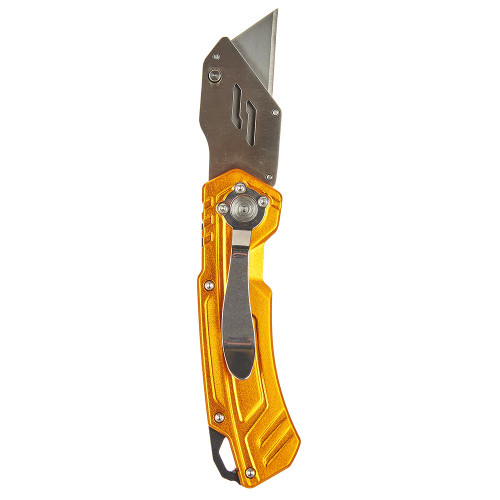 Лезо виготовлене з високоякісної вуглецевої сталі SK5, що забезпечує йому відмінну гостроту та довговічність. Корпус ножа виконаний з алюмінієвого сплаву, що надає інструменту міцність і забезпечує надійний захист від механічних пошкоджень, продовжуючи термін його служби.