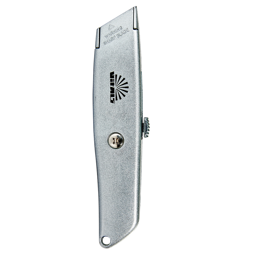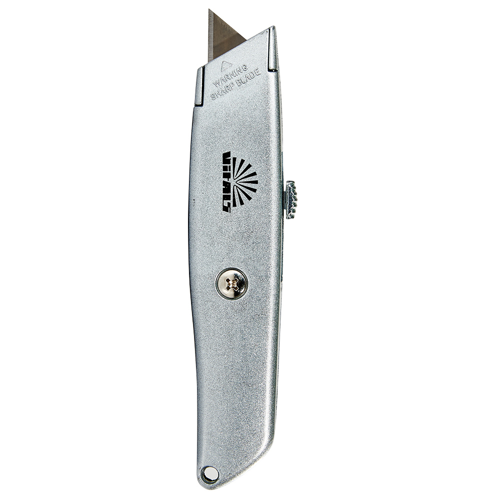 Ніж трапеція Vitals – це універсальний ніж для різання таких матеріалів як лінолеум, килимові покриття, гіпсолітові плити, гіпсокартон, покрівельні матеріали, пластик, дерево.