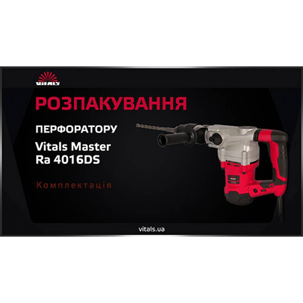 Відмінною особливістю перфоратора Vitals Master Ra 4016DS є велика потужність (1600 Вт) і достатньо висока сила удару (9,0 Дж). Дана модель має два режими роботи: свердління з ударом і удар без свердління.