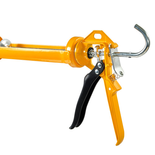 Шток пістолета витримує високі навантаження, не деформується під тиском. Пристрій забезпечує контрольований витік герметика, що дозволяє економно витрачати матеріал. Застосовується для герметизації швів, тріщин, стиків. Підходить для роботи з акриловими, силіконовими та поліуретановими герметиками.