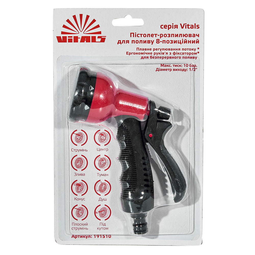 Пістолет-розпилювач 8-позиційний пластиковий Vitals