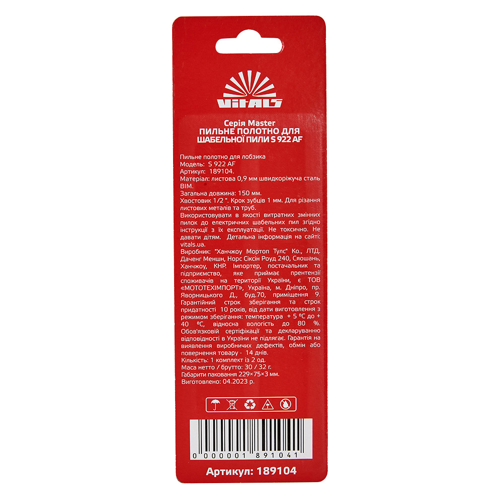Пиляльне полотно для шабельної пили Vitals Master S 922 AF 2 од.