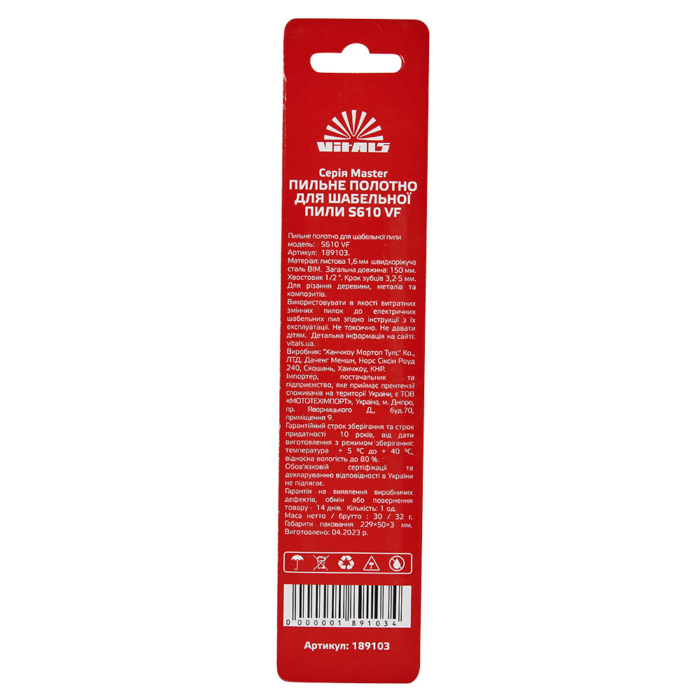 Пиляльне полотно для шабельної пили Vitals Master S610 VF — це чудовий вибір для тих, хто потребує надійного інструмента для різання різноманітних матеріалів із високою ефективністю та довговічністю.