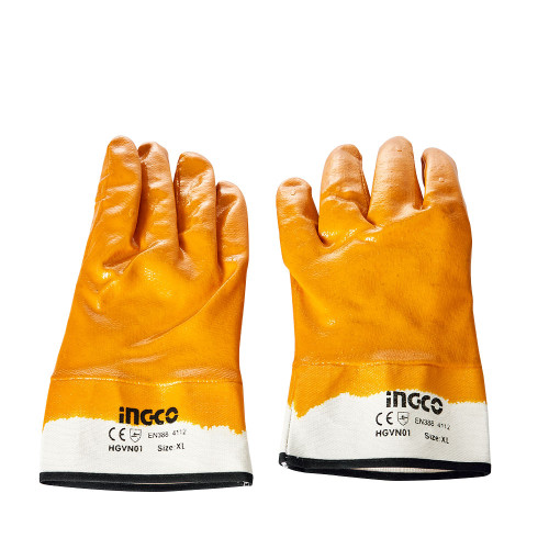 Рукавички INGCO XL з нітриловим покриттям та манжетом-крагою призначені для роботи в масляному та бензиновому середовищі, забезпечуючи надійний захист рук від шкідливих речовин і механічних пошкоджень.