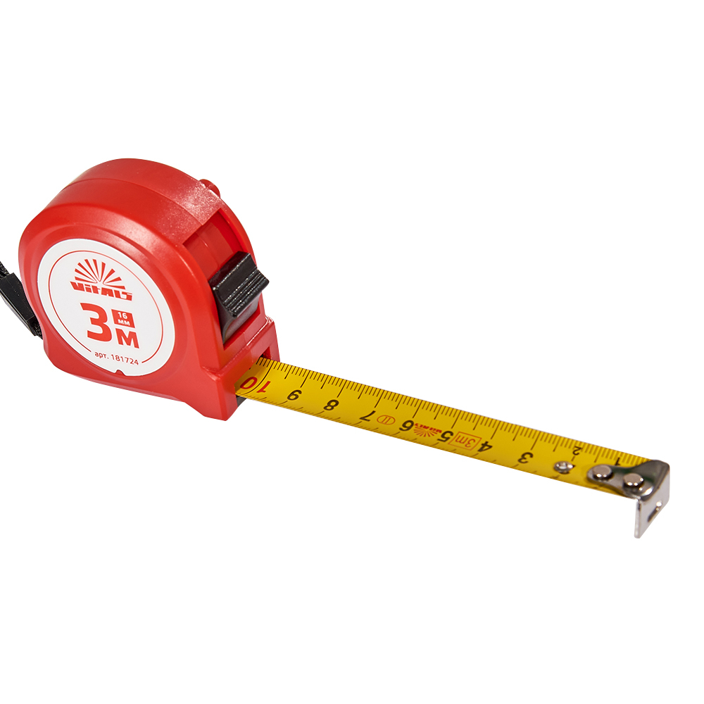 - **Довжина і ширина**: Рулетка має довжину 3 метри і ширину стрічки 16 мм, що забезпечує достатню довжину для більшості вимірювальних завдань.
