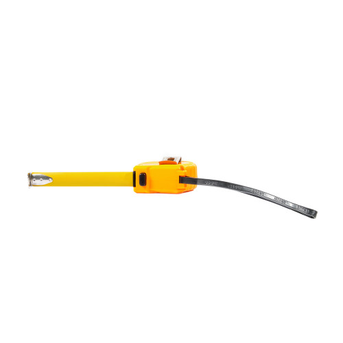 Корпус рулетки виготовлений із міцного пластику, що захищає її від пошкоджень під час падінь або ударів. Ергономічна форма та компактні розміри дозволяють легко носити рулетку з собою, а спеціальна кліпса для кріплення на поясі забезпечує додаткову зручність у користуванні. Стрічка має чітке маркування, яке добре читається навіть при недостатньому освітленні.