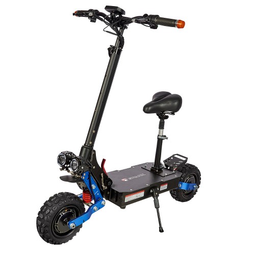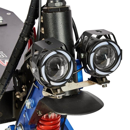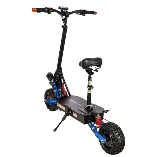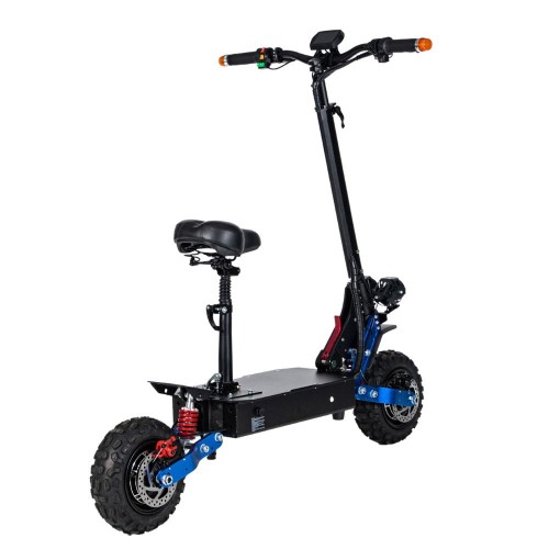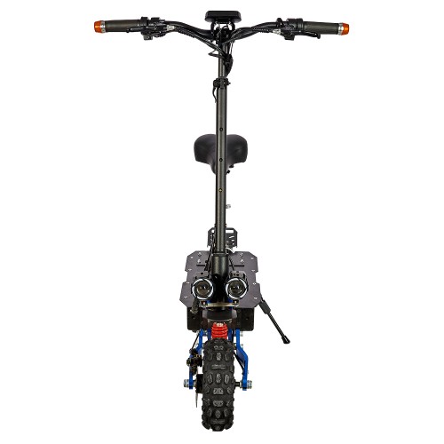 RAPTOR 11" оснащений подвійними двигунами сумарною потужністю 3000 Вт, що забезпечує впевнений старт і плавне прискорення навіть на схилах до 15°. Великі пневматичні колеса 11×2,5" і подвійна амортизаційна система роблять поїздку м’якою та стабільною, дозволяючи впевнено долати будь-які нерівності дороги. Акумулятор на 48 В, 20 А·год забезпечує пробіг до 45 км, а зарядка займає 7–10 годин. Ступінь захисту IP54 гарантує надійну роботу електроніки у будь-яких погодних умовах.