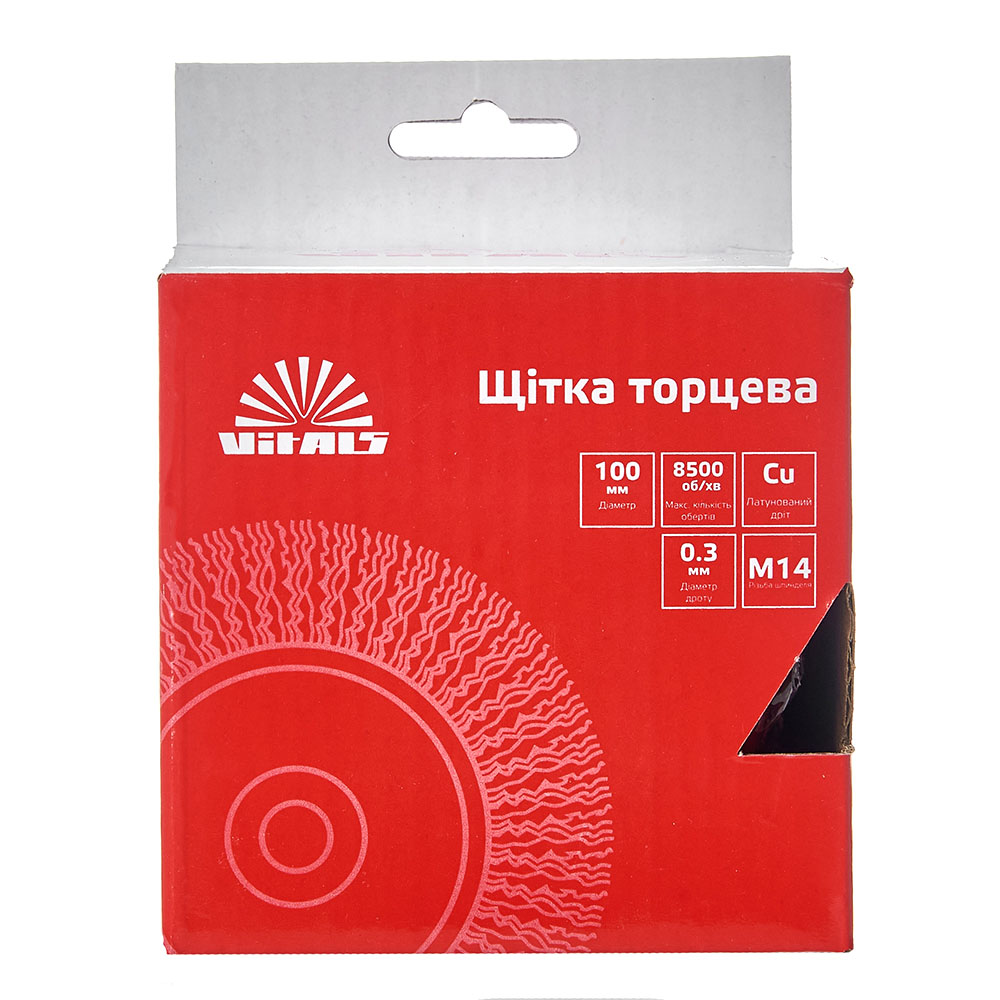 Характеристики на Щітка-чашка Vitals гофрована латунована 100 мм М14, 0,3 мм