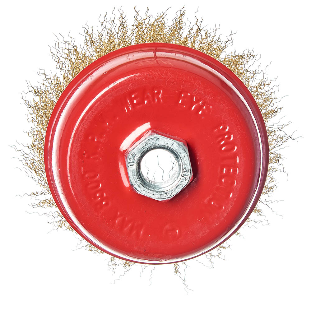 1. **Призначення:** Ця щітка-чашка призначена для обробки дерева, зняття фарби, шліфування металу та зняття іржі. Вона ефективно впорається з великими ділянками поверхні, зварювальними швами та листовим металом.