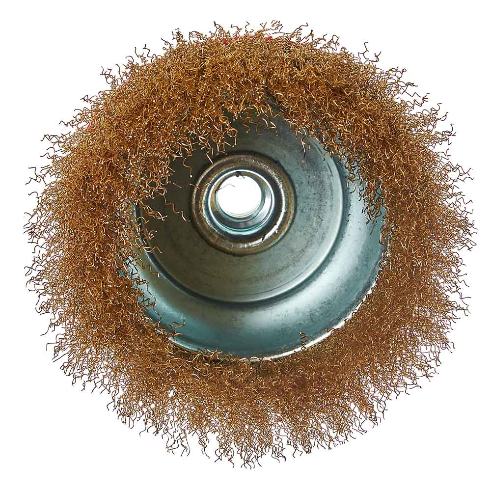 1. **Призначення:** Ця щітка-чашка призначена для обробки дерева, зняття фарби, шліфування металу та зняття іржі. Вона ефективно впорається з великими ділянками поверхні, зварювальними швами та листовим металом.