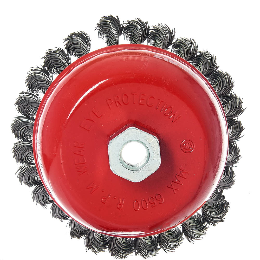 1. **Призначення:** Ця щітка-чашка призначена для обробки дерева, зняття фарби, шліфування металу та зняття іржі. Вона ефективно справляється з великими ділянками поверхні, зварювальними швами та листовим металом.
