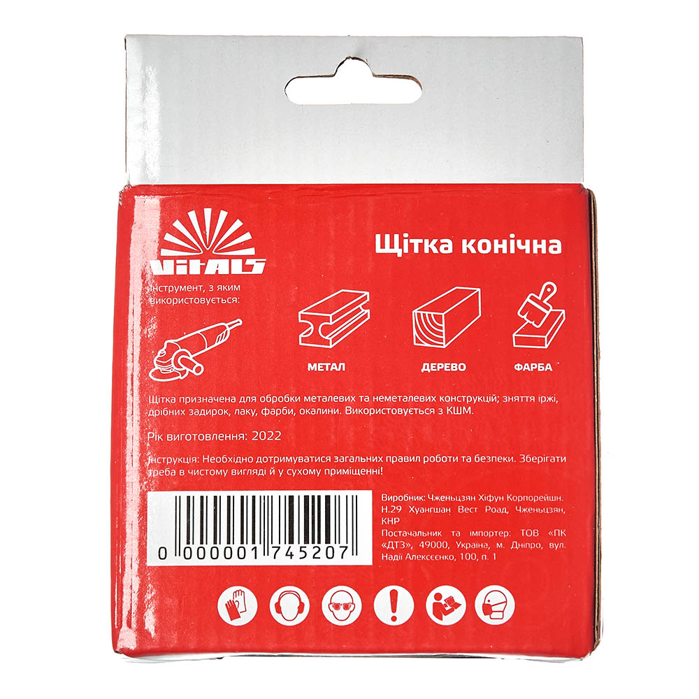 Щітка конічна Vitals є надійним інструментом для різноманітних завдань обробки поверхонь і забезпечує ефективне видалення забруднень та шліфування матеріалів з високою точністю.