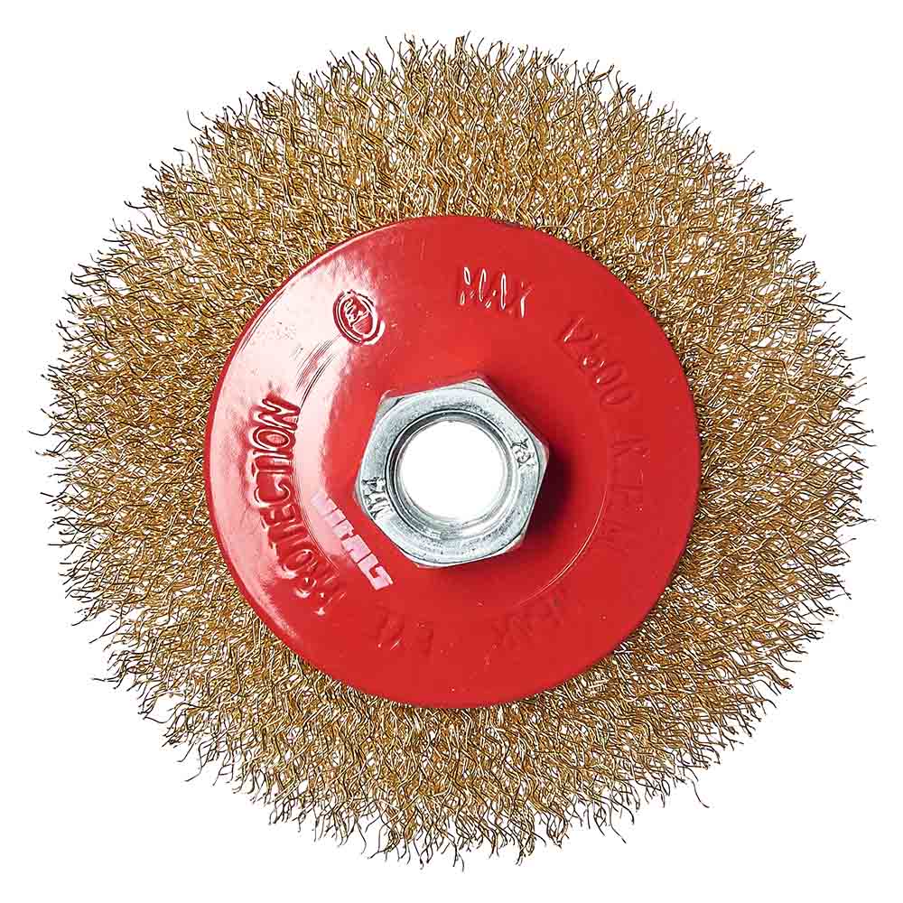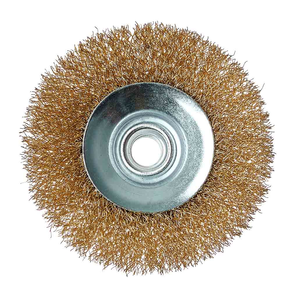 Характеристики на Щітка конічна Vitals гофрована латунована 100 мм М14, 0,3 мм