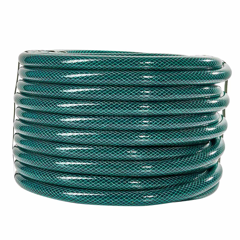 Шланг виготовлений із високоякісного полівінілхлориду (ПВХ), що відзначається підвищеною міцністю, гнучкістю та зносостійкістю. Його структура забезпечує стійкість до впливу вологи, ультрафіолетового випромінювання та перешкоджає утворенню водоростей усередині, що значно подовжує термін служби. Завдяки своїй універсальності, шланг підходить для зрошення садів і городів, наповнення резервуарів, підключення до систем водопостачання, а також для різноманітних господарських і промислових завдань.