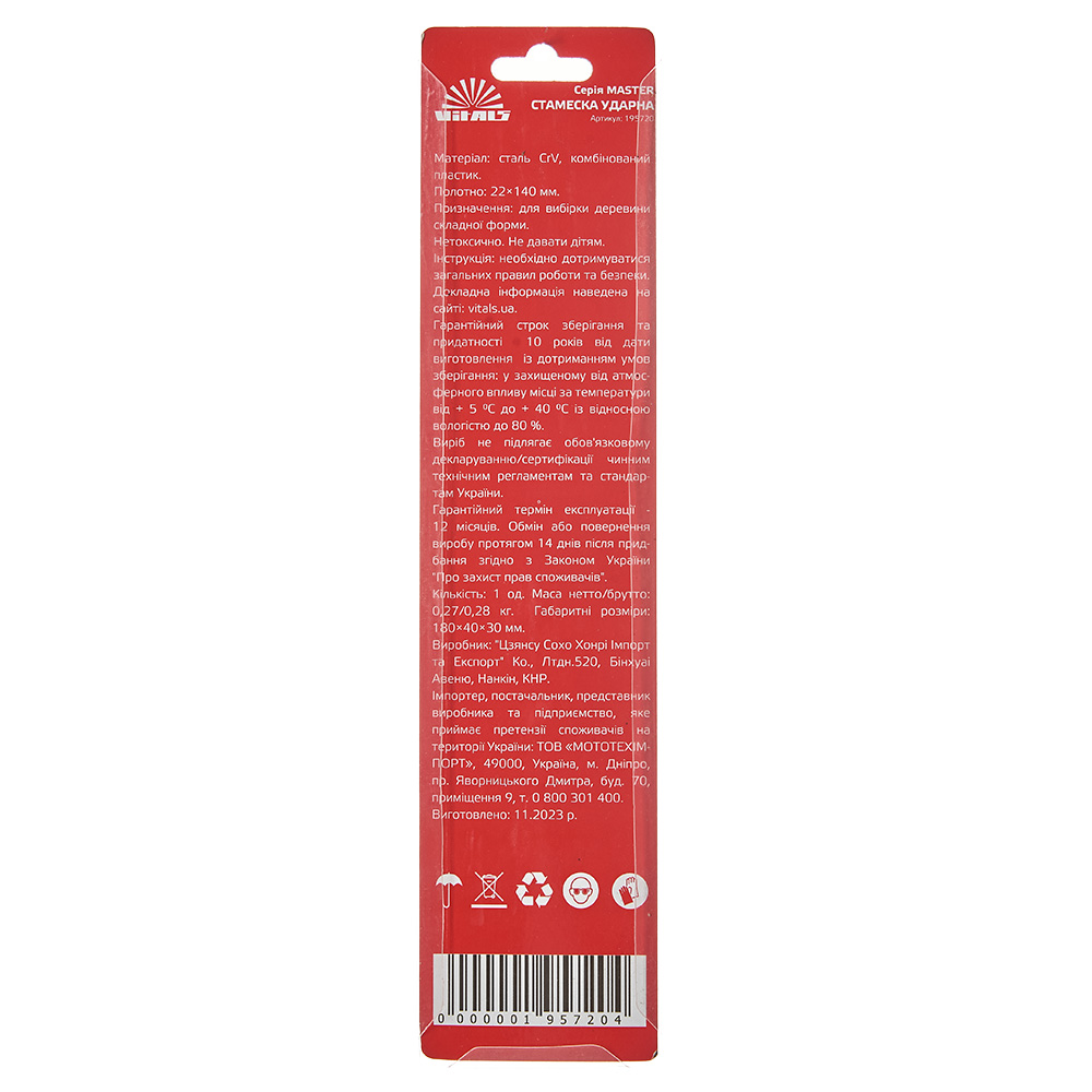 Стамеска 22×140 мм Vitals Master — це відмінний інструмент для тих, хто потребує надійного та точного інструменту для роботи з деревом. Вона поєднує в собі високу якість, комфорт у використанні та довговічність, що робить її ідеальним вибором для різноманітних столярних робіт.