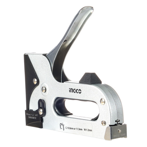 Механічний степлер INGCO INDUSTRIAL — надійний інструмент для будівельних, ремонтних робіт та меблевого виробництва. Використовується для кріплення ізоляційних матеріалів, панелей, облицювання та інших деталей до дерев’яних, ДВП, ДСП, гіпсокартонних та пластикових поверхонь.