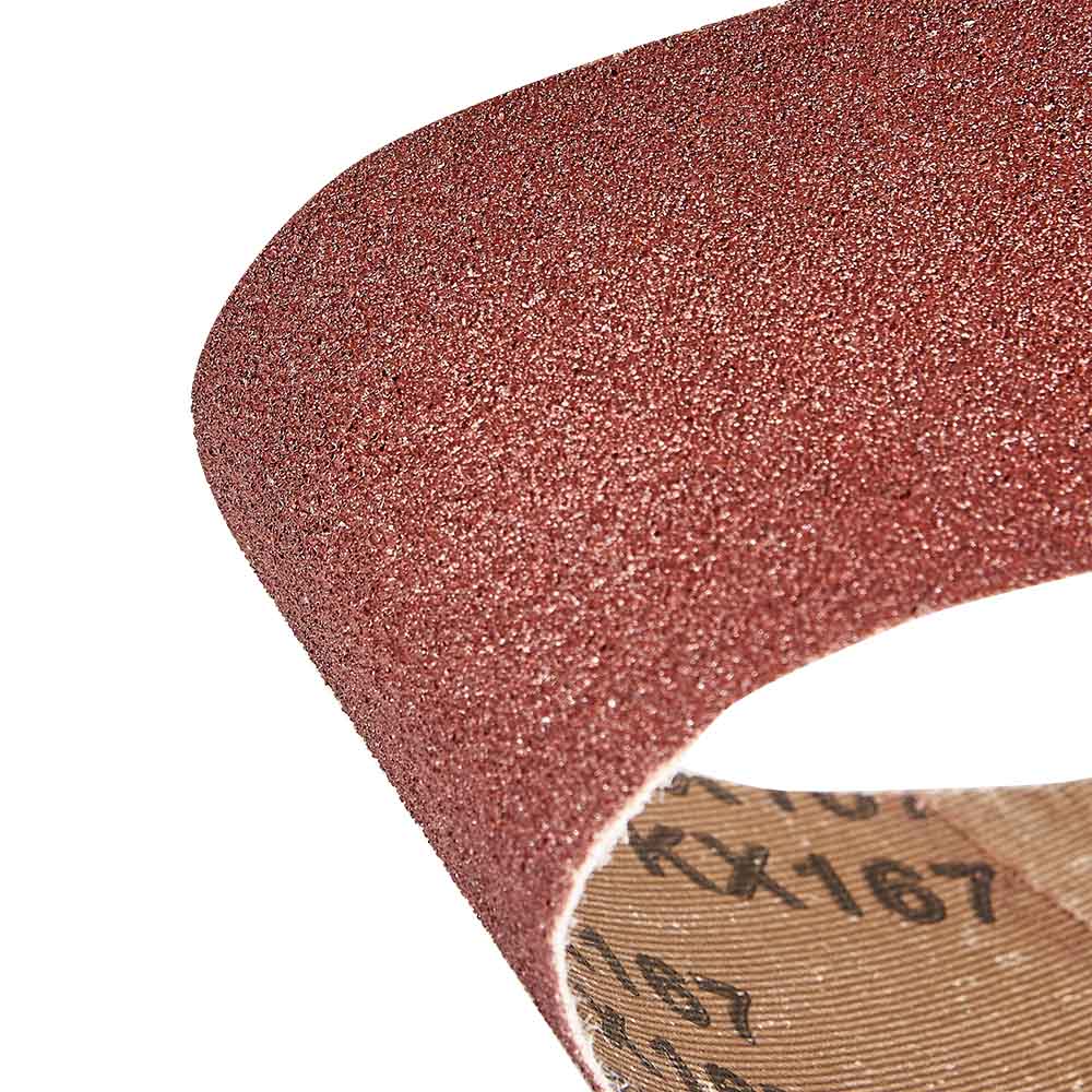 Основою стрічки є міцна та еластична тканинна основа, яка не рветься під час експлуатації, забезпечуючи тривалу роботу навіть з міцними матеріалами. Посилений тип сполучного шва підвищує міцність стрічки і не викликає биття під час шліфування.