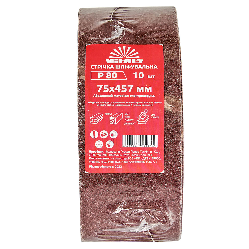 Стрічка шліфувальна Vitals 75х457 мм з. 80