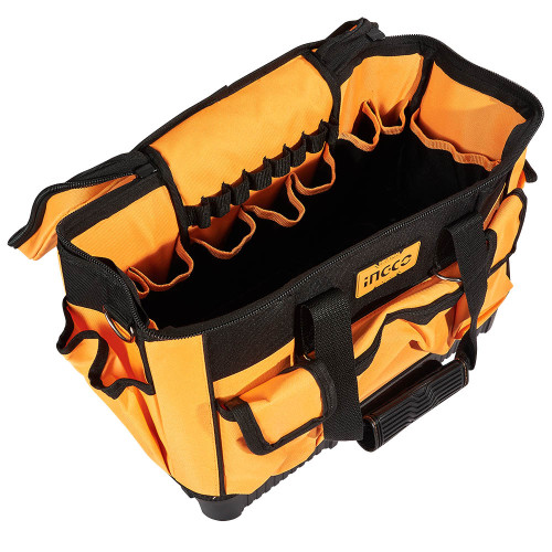 Сумка INGCO INDUSTRIAL 410 мм з 25 кишенями — ідеальний вибір для тих, хто цінує порядок, місткість і надійність під час роботи з інструментами.