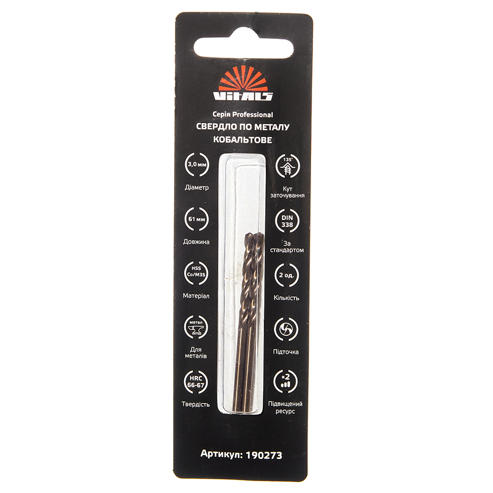 Свердло по металу HSS-Co/M35 3.0 (2 од.) Vitals Professional
