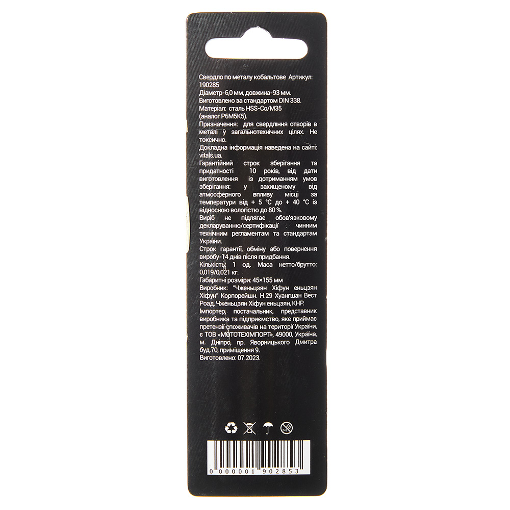 Свердло по металу HSS-Co/M35 6.0 (1 од.) Vitals Professional