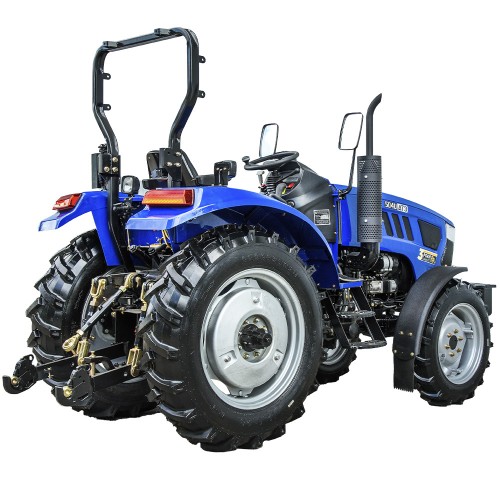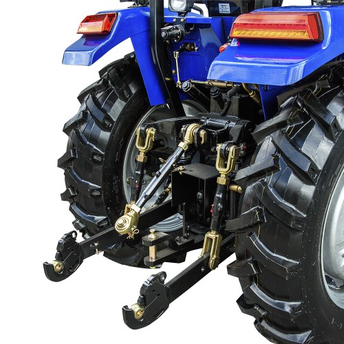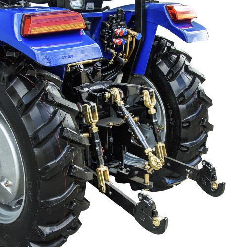 Задня універсальна триточкова навісна система із двома гідроциліндрами та чотирма гідравлічними виходами зі швидкороз’ємними муфтами дозволяє працювати з широким спектром навісного обладнання. Вал відбору потужності з режимами 540/1000 об/хв забезпечує сумісність із фрезами, сівалками, косарками та іншими агрегатами.