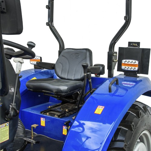 Механічна коробка передач із формулою (4×2)+(4×2), додатковими понижувальними передачами та окремою реверсивною коробкою дозволяє точно підібрати швидкість для роботи з будь-яким навісним обладнанням. Двохдискове зчеплення постійно замкнутого типу забезпечує плавну передачу потужності без ривків. Колісна формула 4×4 і блокування диференціала заднього моста гарантують відмінне зчеплення навіть на слизьких або вологих ґрунтах.