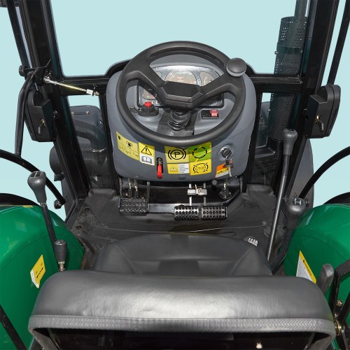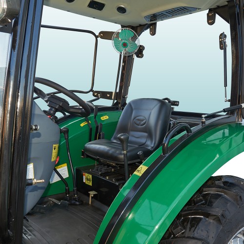 - **Кабіна водія:** ізольована, із суцільним склінням і круговим оглядом, з опаленням, склоочисником переднього скла