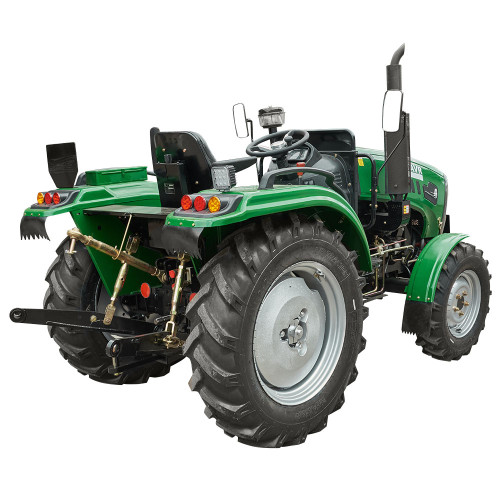 2. **Повнопривідність:** Мінітрактор обладнаний повнопривідною системою, що робить його ефективним в різних умовах роботи та на різних типах ґрунту.