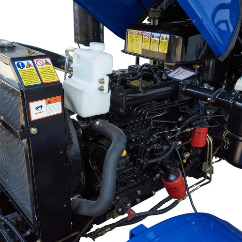 Трактор обладнаний двома типами паливних фільтрів: грубої очистки з відстійником і тонкої очистки моделі CX70100, що забезпечує ефективну фільтрацію та продовжує термін служби паливної системи. Двигун споживає не більше 245 г/кВт*год, що робить його економічним у використанні. Об’єм паливного бака 35 л дозволяє працювати тривалий час без дозаправки.