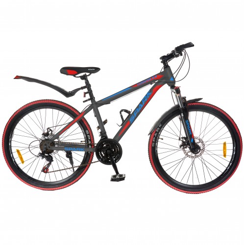 SPARK Forester 2.0 26" ст15″ має всі необхідні аксесуари для комфортної поїздки, включаючи брудозахисні крила, стоянкову підніжку, переднє та заднє світло та тримач для фляги.