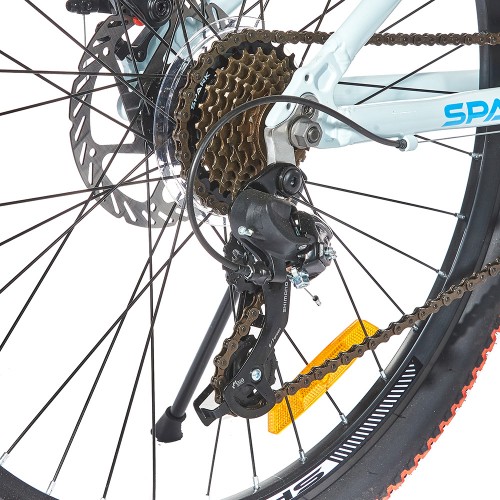 Оснащений високоякісними компонентами від SHIMANO, зокрема манетками, заднім та переднім перемикачами, велосипед гарантує плавне та точне перемикання швидкостей. Дискові гальма діаметром ротора 160 мм забезпечують високий рівень безпеки та контроль у будь-яких умовах.