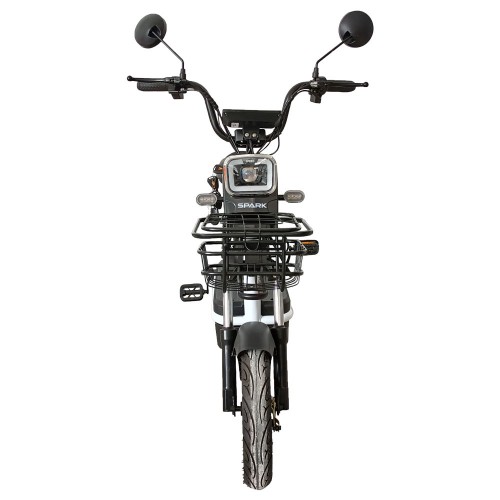 Електровелосипед оснащений переднім кошиком, заднім сидінням для пасажира, велосипедними педалями, підніжкою, дзеркалами заднього виду, сигналізацією та дистанційним ключем керування.