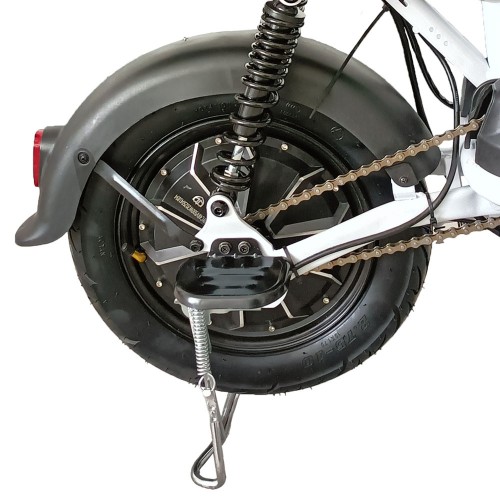 Амортизаційна передня та задня підвіска робить поїздку комфортною на нерівних дорогах. Перфоровані безкамерні шини 10–2,75" гарантують стійкість та надійне зчеплення з поверхнею.