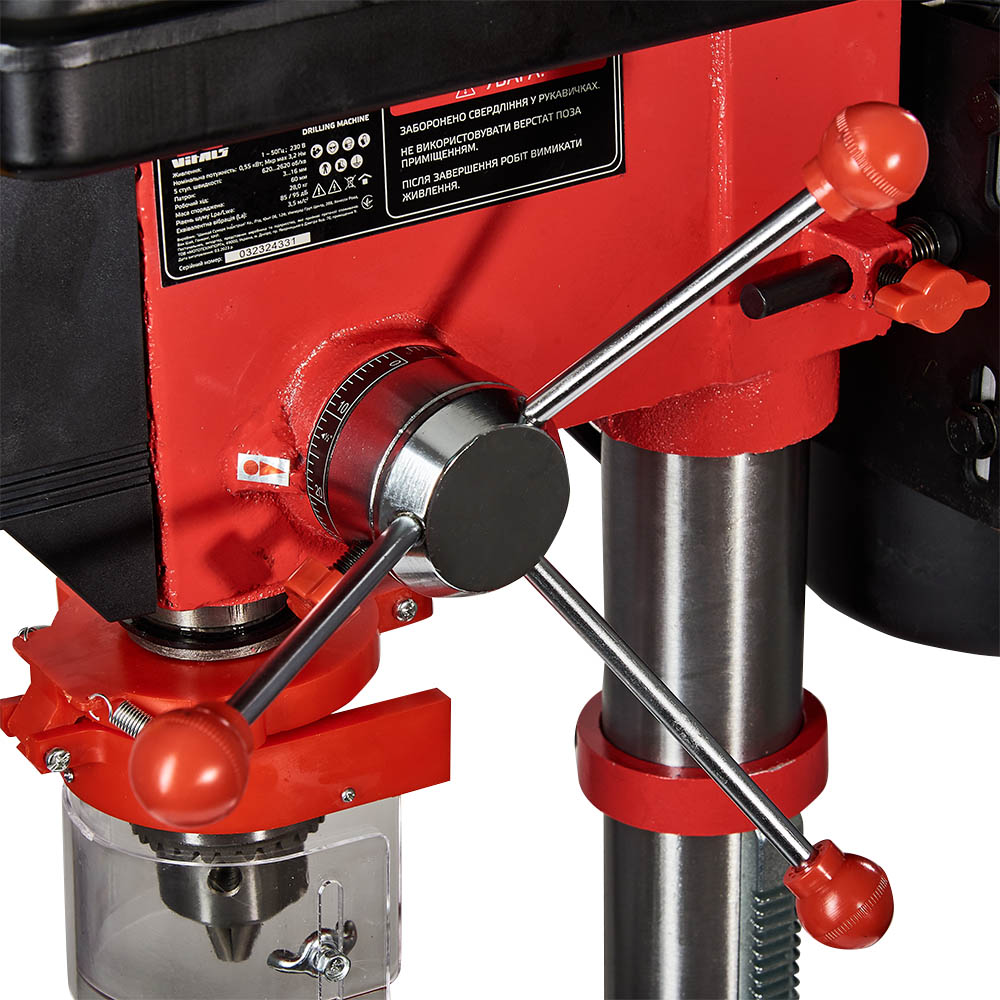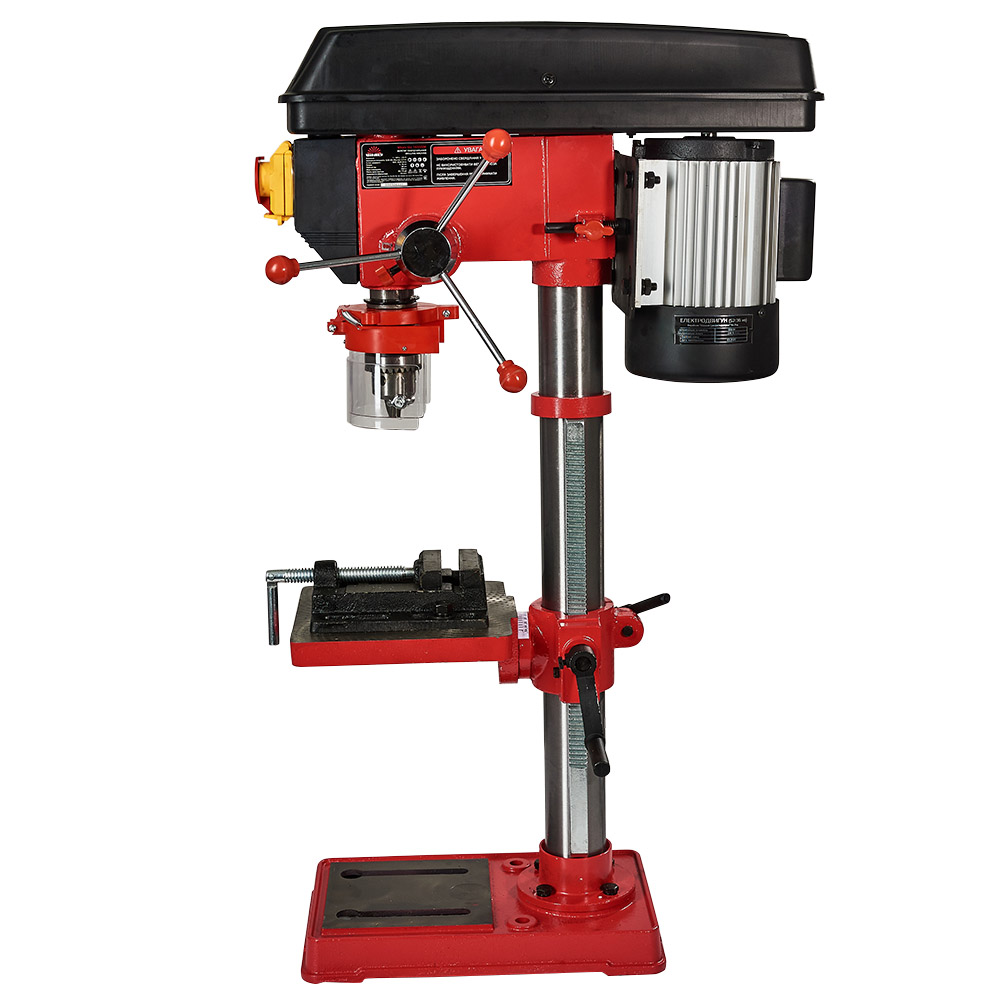 Верстат оснащений 16-міліметровим свердлильним патроном, який забезпечує надійне кріплення свердлильного інструменту. До комплекту постачання входять лещата, які гарантують стабільну фіксацію оброблюваного матеріалу, забезпечуючи надійність під час свердлувальних операцій.